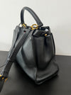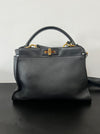 Fendi Peekaboo in black leather shoulder bag with shoulder strap and gold hardware. This bag can be worn handheld, on the shoulder or crossbody.