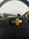 Fendi Peekaboo in black leather shoulder bag with shoulder strap and gold hardware. This bag can be worn handheld, on the shoulder or crossbody.